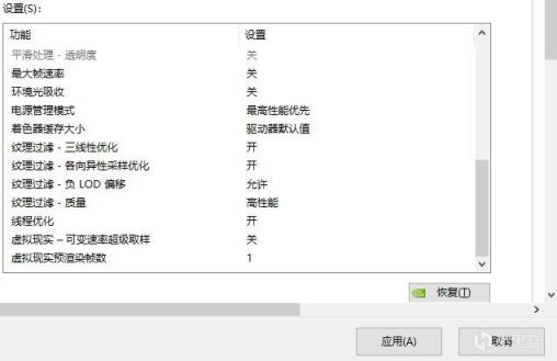 电源管理选择高性能,线程优化打开,纹理过滤选择高性能,虚拟现实渲染开1即可,不可不开,都完成之后记得应用,没有应用选项关闭即可完成设置