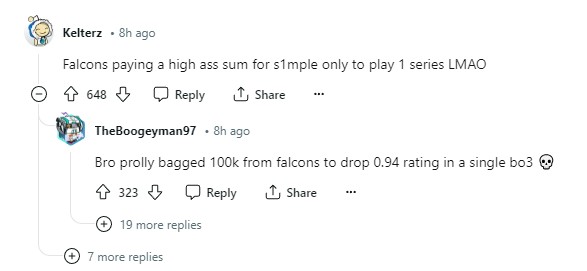 有网友表示虽然Falcons还没有对接下来是否要续租s1mple进行表态,且接下来直到租借期结束,Falcons已经没有什么大型比赛可打了,而当前s1mple的表现似乎并不值得他们继续高价租借;而就s1mple当前的水平,已经建立好完善的作战体系的NAVI或许也并不会让他再度回到首发;作为曾经的TOP1,s1mple的身价居高不下,而当下他的表现又似乎有些“掉价”,这就导致部分队伍就算是有意愿想买断或者租借s1mple,也不一定能够且愿意支付如此昂贵的费用。