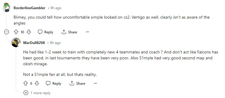 持这个观点的玩家也不在少数,他们认为虽然s1mple昨天得表现不佳,但是大众还是不能单单拿一场BO3来判定他现在的水平情况;就算是他当下的水平不高,但是毕竟这是他在CS2的第一场比赛,因为不适应而打成这样也情有可原。