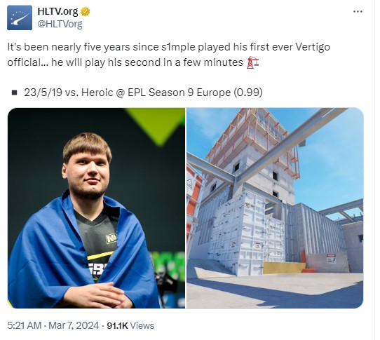 -s1mple已经好久没打过Vertigo这张图了……而马上他就要在这张图作战了。