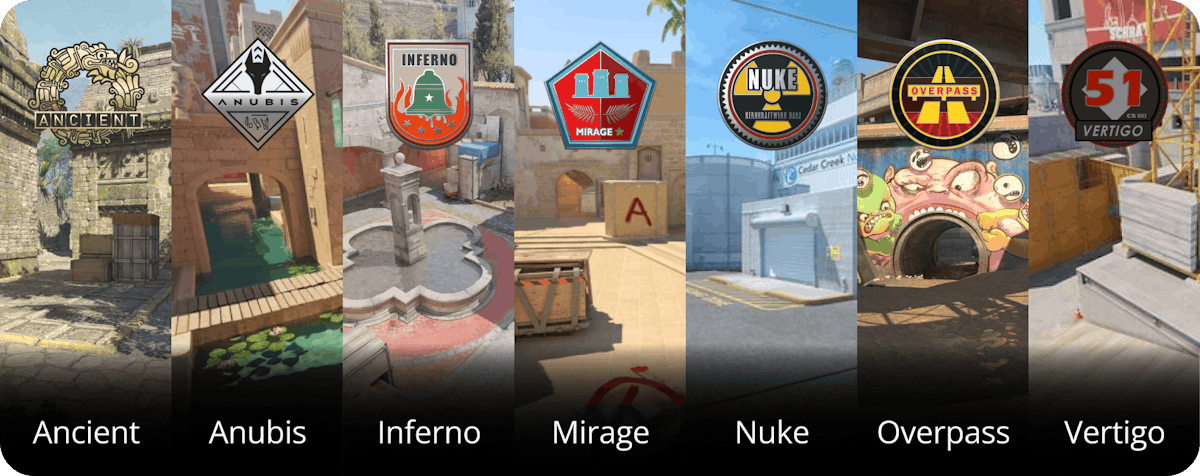 服役地图池中有七张地图,地图偶尔会轮换。要了解哪些区域舒适,哪里容易或难以防守,从一个点到另一个点需要多少时间等,学习所有这些细节的最佳方式就是玩游戏,即使只是为了随便玩玩以获得一种场所感。从Overpass上学习快速转点,再到学习Inferno上的控图假打技巧,每个人都有适合自己的地图。