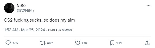 尼公子对目前CS2的优化表示了不满,同时也对自己这场比赛的发挥不满意。