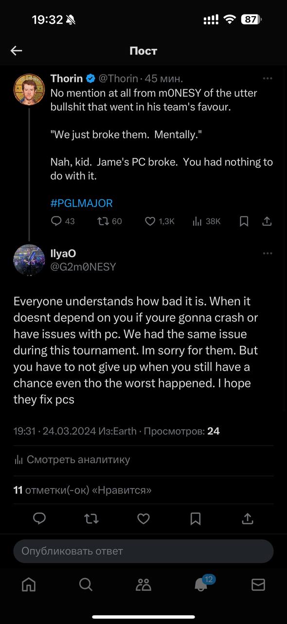 在击败VP后接受采访时,m0NESY说“我们在心理上击溃了他们”, 这一言论随后受到主播Thorin嘲讽,而太子也随即作出了回应。