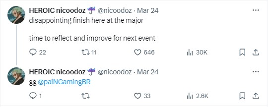 在自己的老家被巴西队伍paiN击败后,X队遗憾结束了自己的Major之旅,赛后其官方和选手也分别在社交媒体上发表了动态。