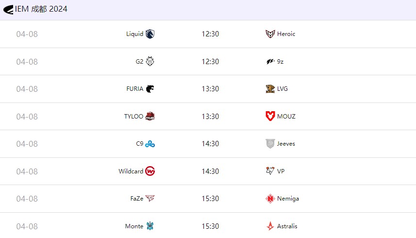 B组:FaZe、Nemiga、Astralis、Monte、C9、Jeeves、VP、Wildcard