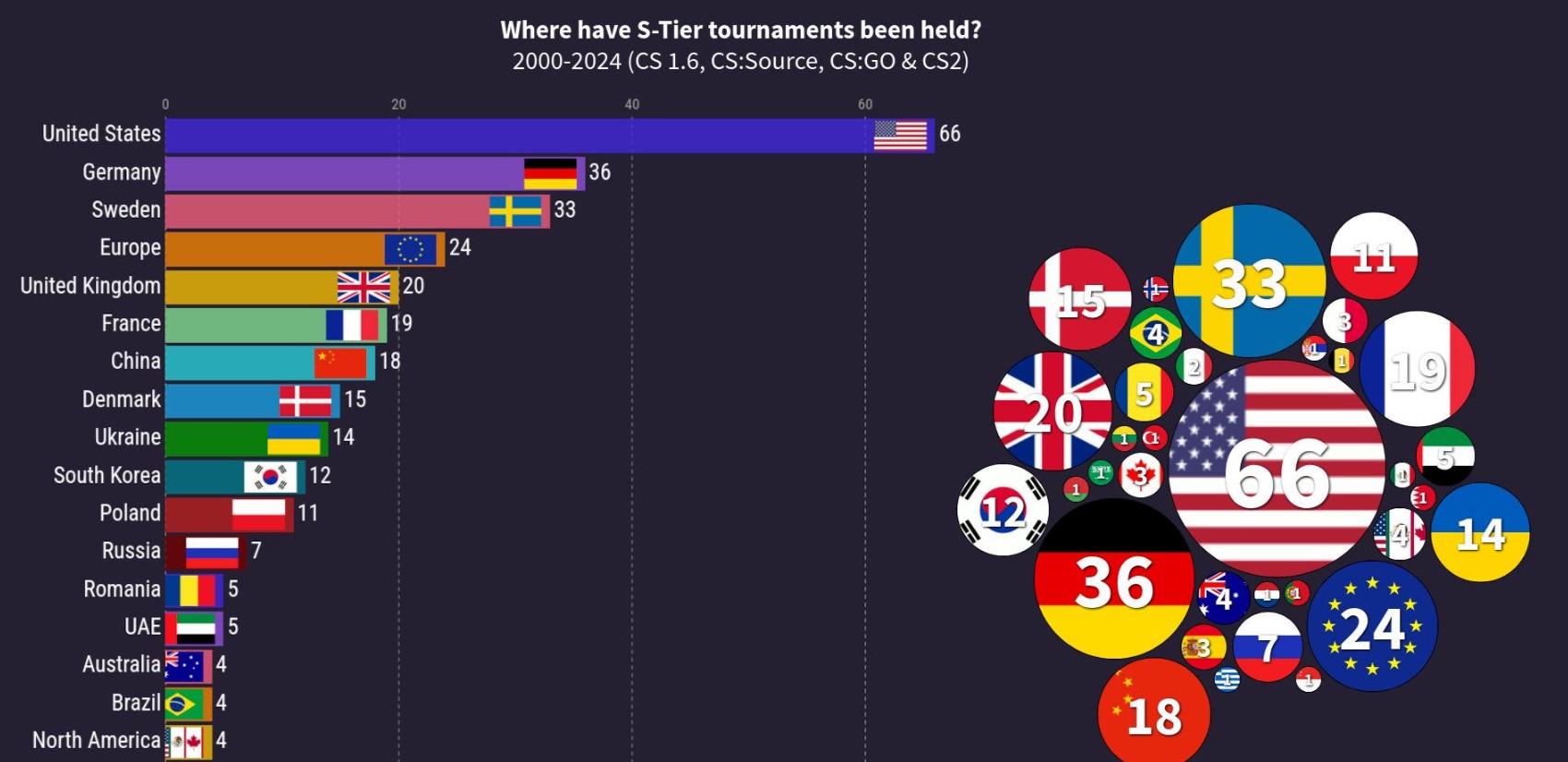 包括2024年完美世界上海Major在内,中国在2006年至2024年将一共举办了或计划举办18场S级赛事: