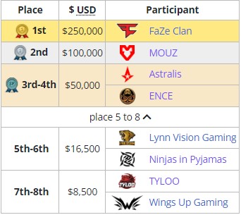 这项赛事的总奖金高达150万美元,共有整整24支战队参与比赛。在这场空前盛大的赛事中,一共有三支来自我国的CSGO战队参与了冠军的角逐,他们分别是天禄、VG和 FIVE eSports Club。