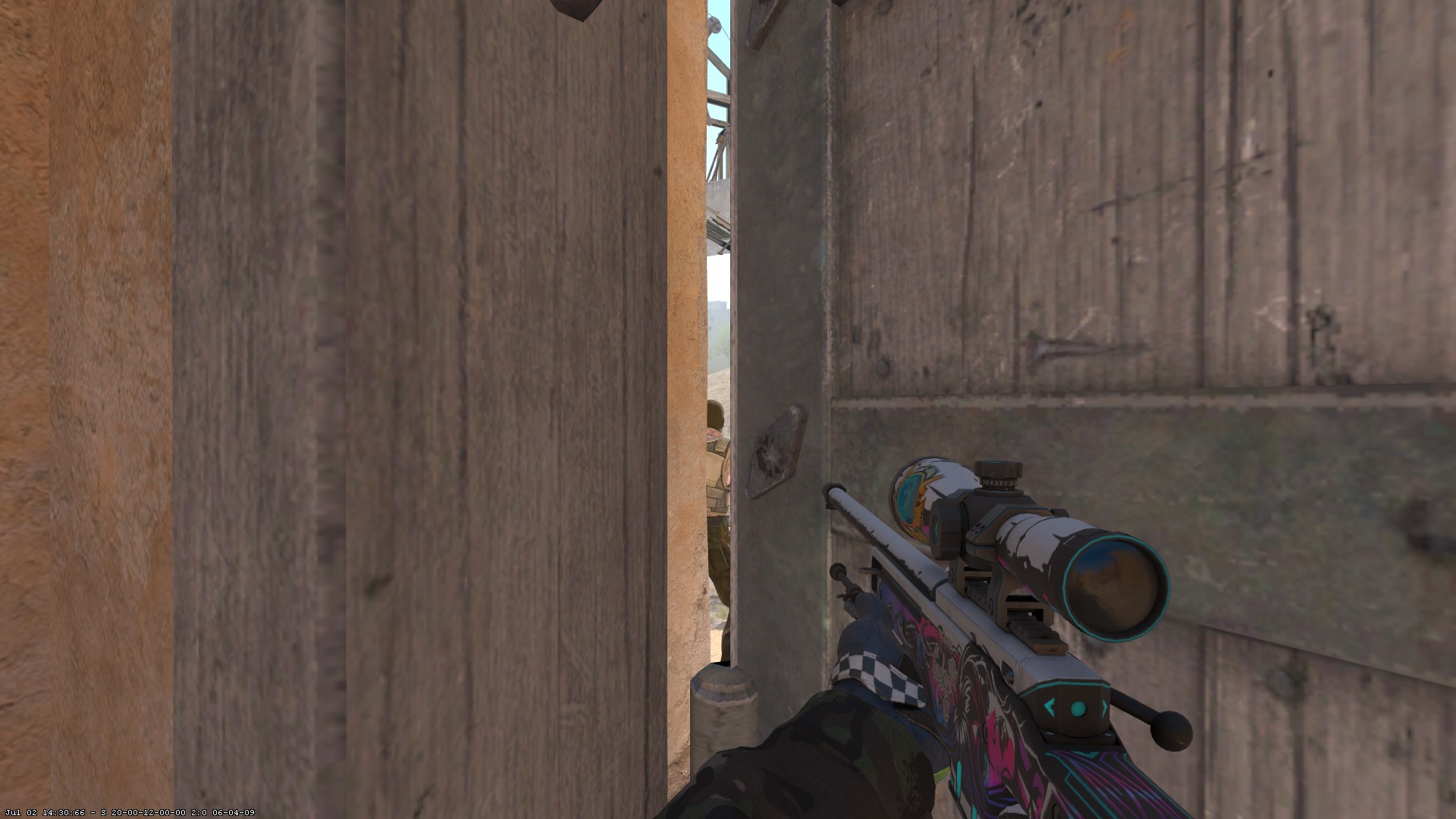 上次更新修复了B包点柱子的一条缝,但是B门又出现了新BUG,可以通过门缝偷窥B包点。