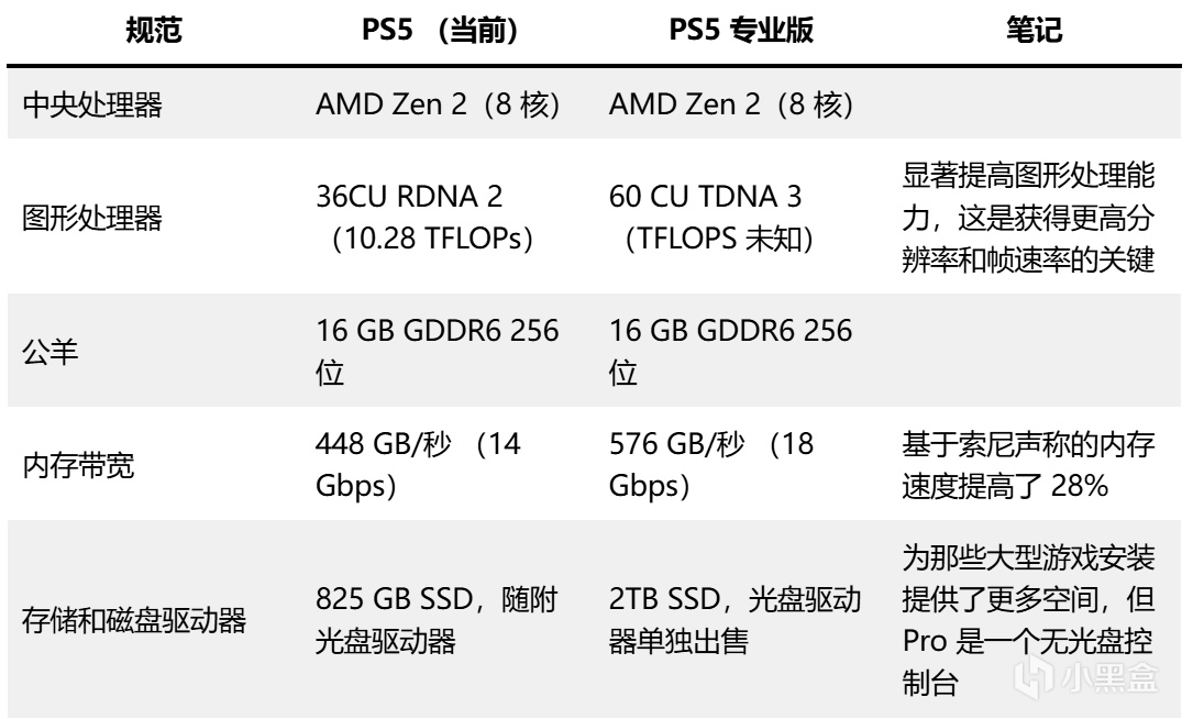 PS5 Pro 虽然没有得到索尼的 100% 确认,但很可能使用了 RDNA 3 图形处理!据现有资料,PS5 Pro 的 GPU 在计算单元数量上有显著提升,增幅达到了 67%,同时内存带宽也提升了 28%。基于原始 RDNA 2 架构的处理器,其拥有 2,304 个流处理器,36 个计算单元(CUs),以及 448GB/s 的内存带宽。依据此基础进行推算,PS5 Pro 的新配置可能接近于 3,840 个流处理器,60 个计算单元,以及 570GB/s 的内存带宽。