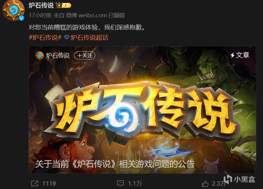 【炉石传说】国服回归遇技术难题,官方致歉并补偿玩家!