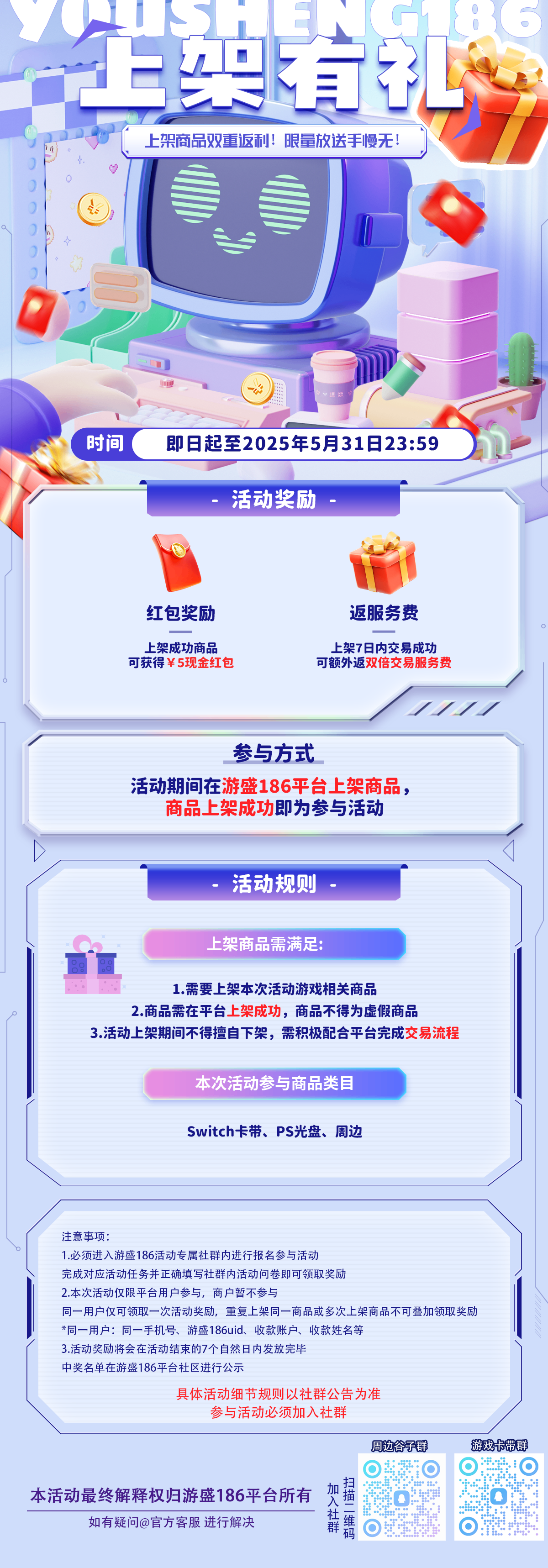 游盛186的小6上架有礼超值返利!活动奖励数量有限,限量100个!